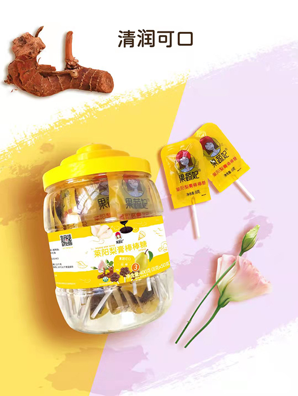 果蔬妃梨膏棒棒糖精選萊陽慈梨膏,結(jié)合六種中草藥,采用冰糖配方,口感適中不甜膩;提倡孩子少吃糖,就給孩子吃好糖,吃無添加的糖!