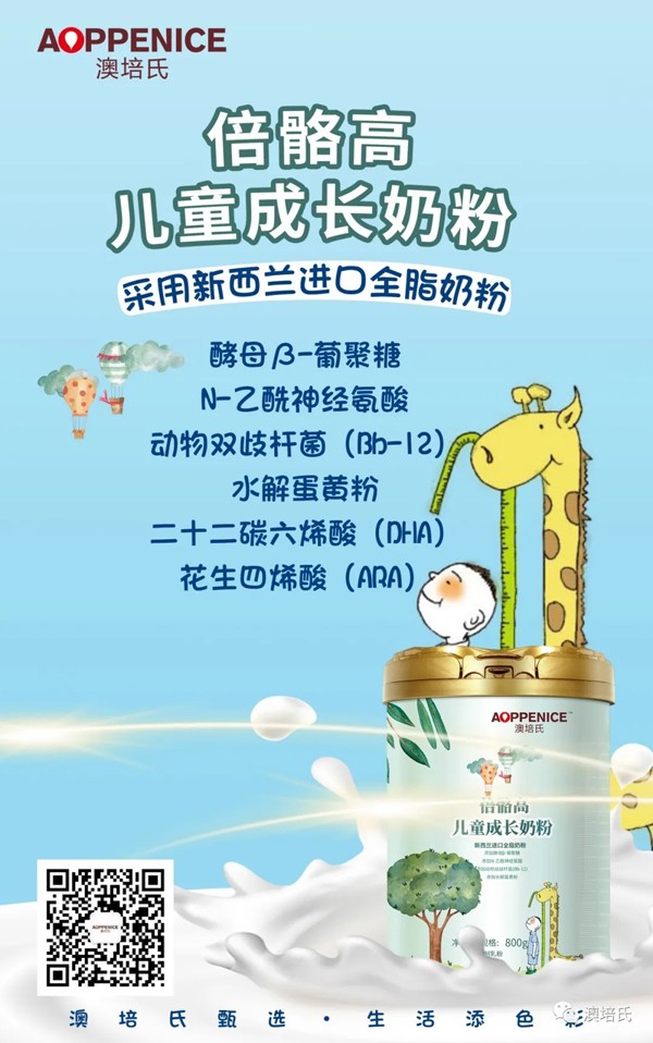 澳培氏-倍骼高兒童成長奶粉為此次系列的主打產(chǎn)品之一。特別添加酵母β-葡聚糖、N-乙酰神經(jīng)氨酸、動物雙歧桿菌(Bb-12)以及水解蛋黃粉成分,為兒童長高補(bǔ)充營養(yǎng)。