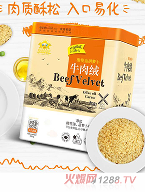 金盾愛嬰胡蘿卜牛肉絨:牛肉含豐富蛋白質(zhì)、鋅、鐵,是腦部神經(jīng)和智力發(fā)展重要營養(yǎng)。