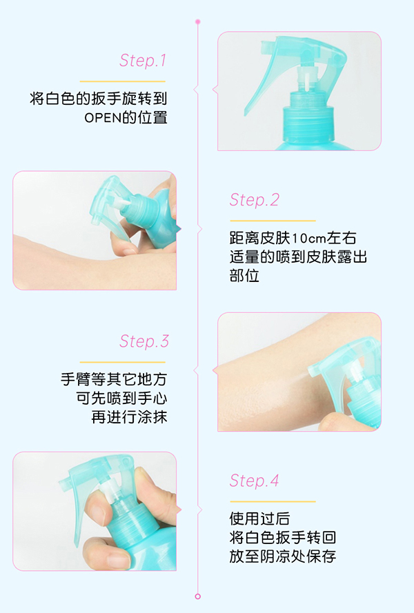 安全無毒,安心使用,經(jīng)過多次抗過敏測試,低刺激,可直接噴涂在皮膚上。
