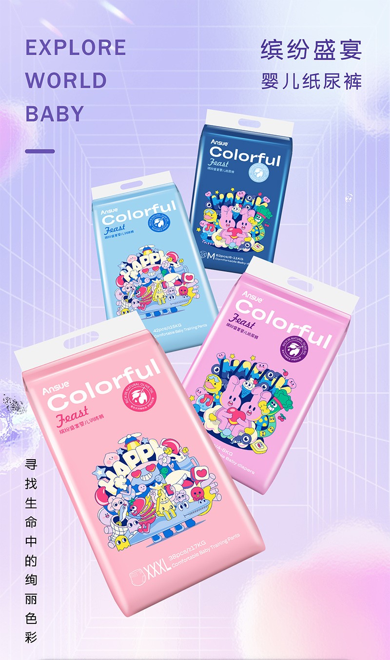 繽紛盛宴嬰兒紙尿褲/拉拉褲,云般柔軟,專為嬰兒肌,多彩設(shè)計(jì)+6代芯體,守護(hù)寶寶每一步。1片瞬吸,8次尿量。瞬吸高分子,一夜一片睡香香;3D表層+智選優(yōu)材,筑牢“屁屁防護(hù)盾”;3D雙層柔點(diǎn)觸感,拒絕潮濕,時(shí)刻干爽親膚;多重品質(zhì)檢驗(yàn),嚴(yán)選優(yōu)材,安全體驗(yàn)有保障;3段式高彈腰圍,柔軟全包裹,隨動(dòng)作變換自由拉伸,貼身防護(hù)不側(cè)漏,給寶寶可感知的舒適;萃取橄欖油精華,呵護(hù)嬌嫩肌,有效防紅臀。搭配科學(xué)護(hù)理提示,換褲清潔、過敏應(yīng)對(duì)全涵蓋。選安秀兒,給寶寶“臀”級(jí)寵愛~