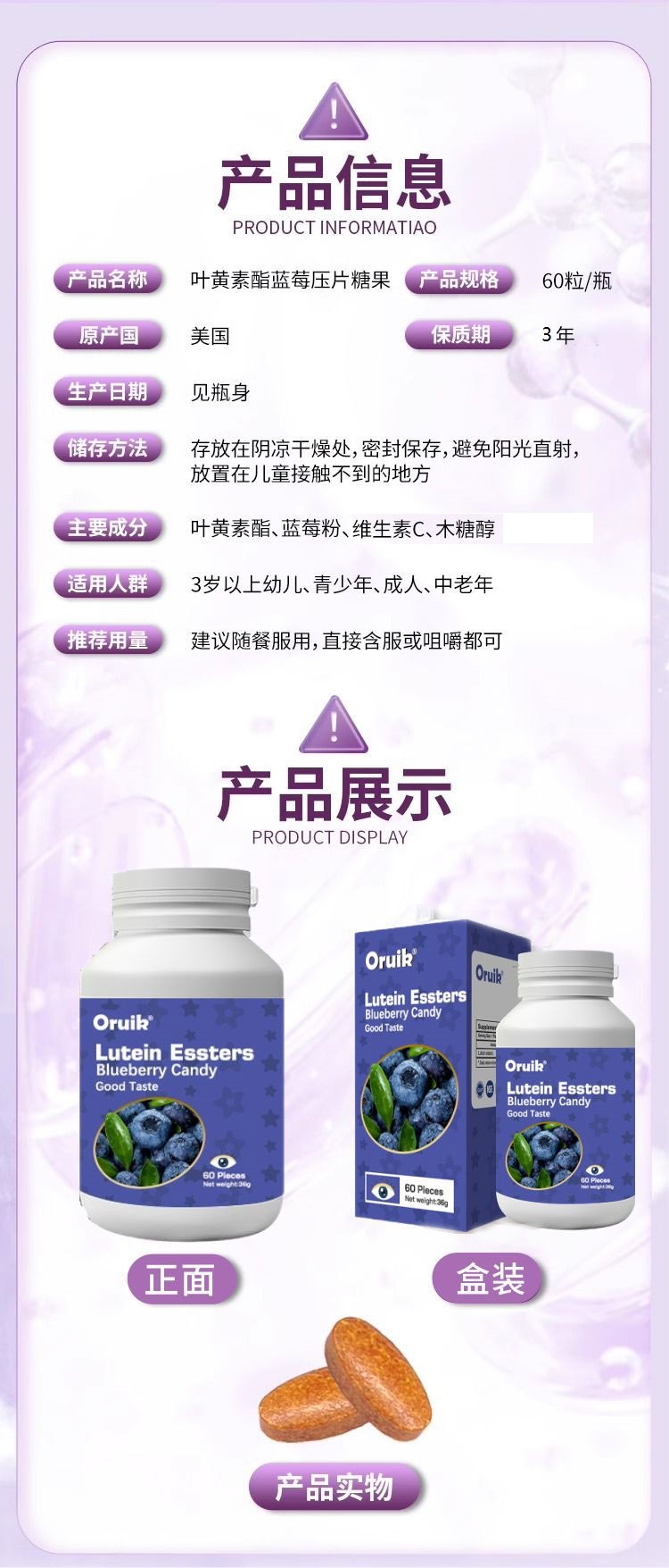 奧瑞康藍(lán)莓葉黃素片