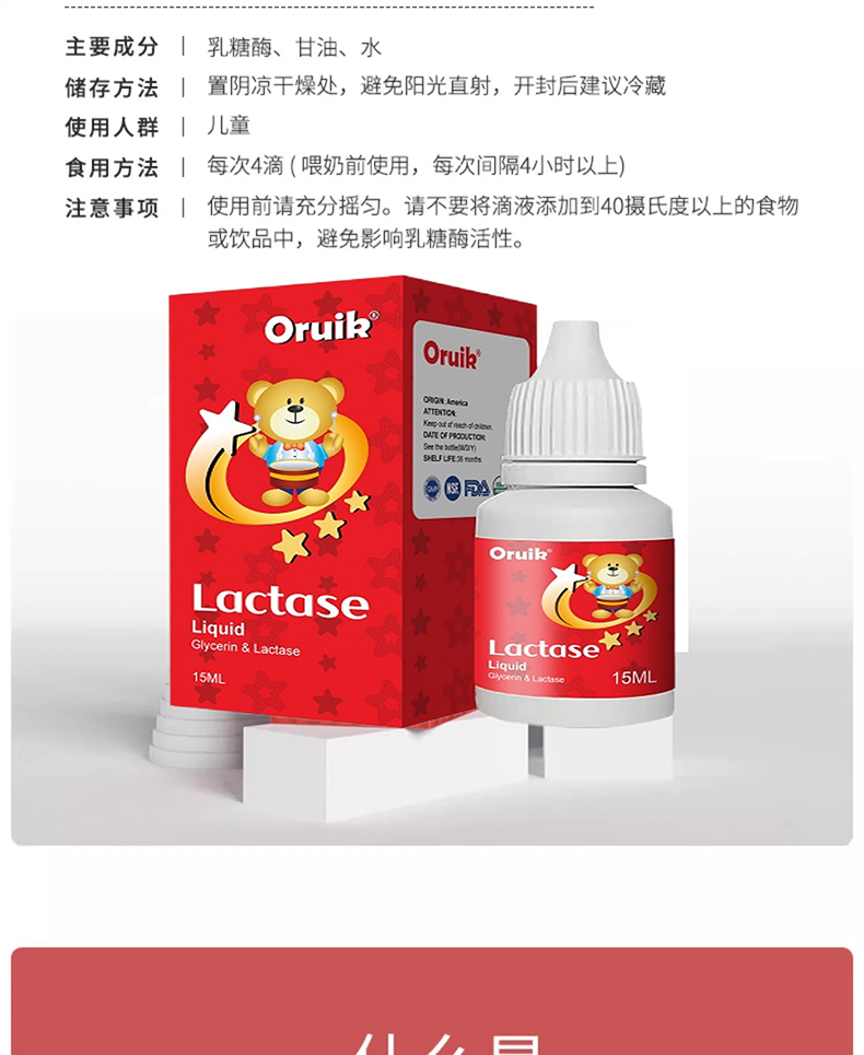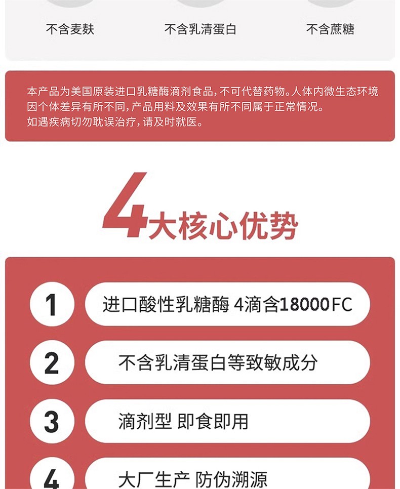 ②進口酸性乳糖酶每4滴含乳糖酶18000FCC