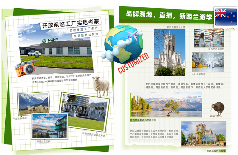 07 品牌背書·實(shí)景賦能:完善的推廣建設(shè),協(xié)助品牌商制作故事背書,支持品牌商新西蘭溯源及游學(xué)。原廠實(shí)景拍攝基地,提供工廠、產(chǎn)線、設(shè)備、原產(chǎn)地風(fēng)光高清素材,支持宣傳片、短視頻、海報(bào)、直播溯源一站式拍攝。