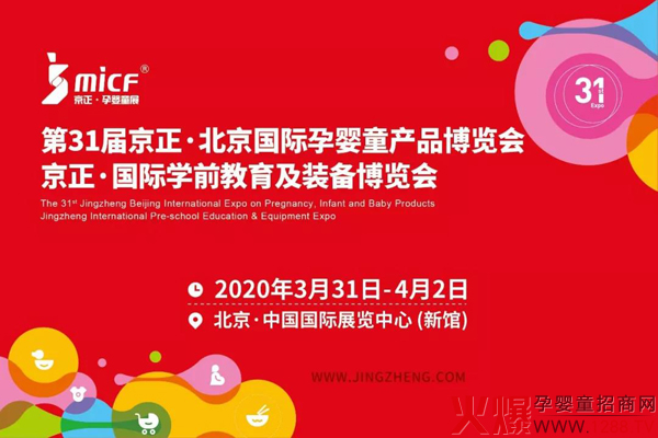 第31屆京正·北京國(guó)際孕嬰童產(chǎn)品博覽會(huì)、京正·國(guó)際學(xué)前教育及裝備博覽會(huì)將于2020年3月31日至4月2日在北京中國(guó)國(guó)際展覽中心(新館)召開。